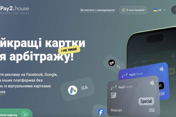 Pay2.House — віртуальні картки для стабільної роботи з рекламними платформами (Facebook, Google, TikTok, та ін.) і онлайн-сервісами.