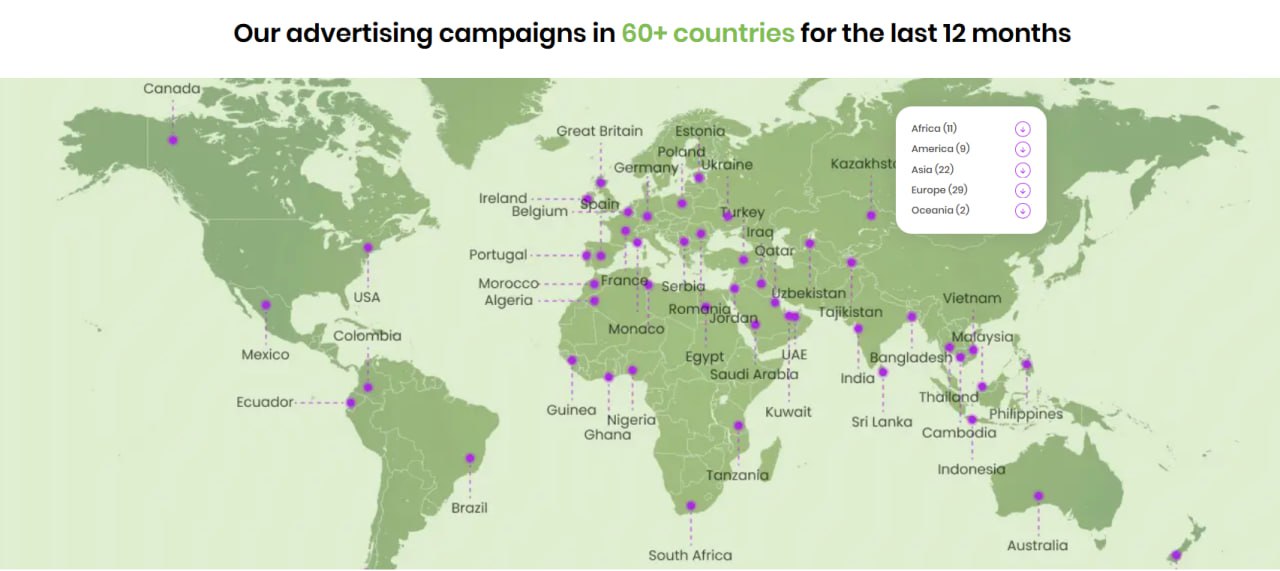 Також у практиці ScroogeFrog є кампанії, що охоплювали понад 20 країн одночасно та генерували 1000+ реєстрацій на день. Такий рівень обсягів можливий лише за наявності стабільної агентської інфраструктури й перевірених рекламних кабінетів.