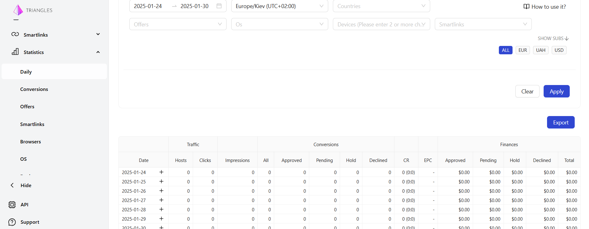Окремої уваги варте розділення на Pending та Hold. Адже більшість партнерок обʼєднують цей параметр, тут вже він розділений. Аби ви могли ще детальніше все відслідкувати.